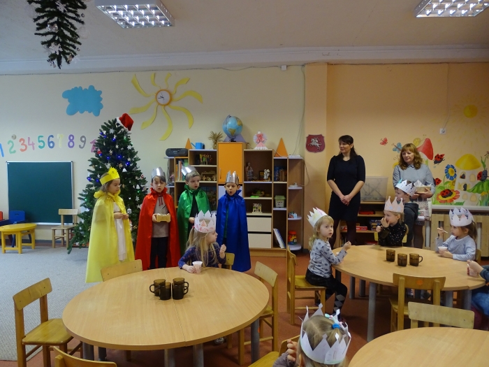 2018 m. sausio 5 d. mūsų darželyje vaikus aplankė trys Karaliai - Kasparas, Merkelis ir Baltazaras, o jiems kelią rodė žvaigždė. Karaliai papasakojo, jog einantys aplankyti tolimoje šalyje gimusio kūdikėlio Jėzaus ir nešantys jam dovanų - aukso, miros ir smilkalų.